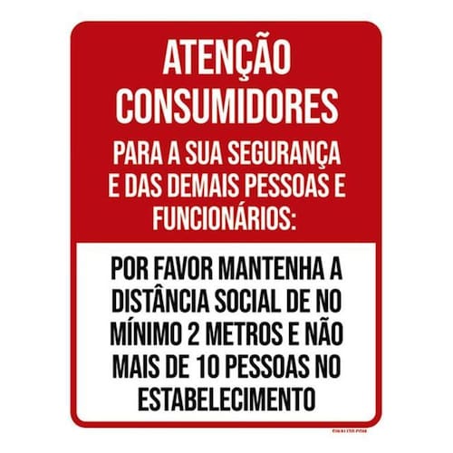 Placa Atenção Consumidores Distância Social 36x46 Placas de sinalizaço fabricadas com poliestireno de alto impacto PSAI de 2mm e impressão ultravioleta.