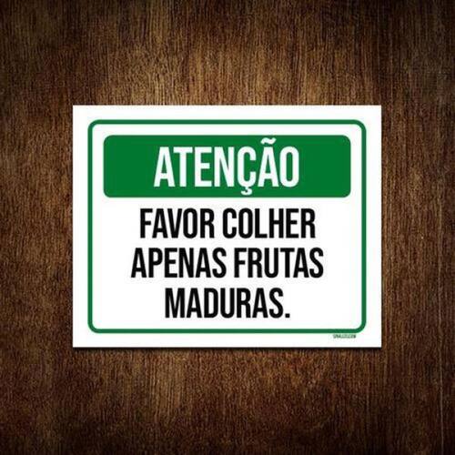 Características: - Placa decorativa Atenção Favor Colhe Frutas Maduras - Fabricadas em poliestireno de alto impacto - Ideal para decorar e organizar os ambientes - Impressão ultravioleta