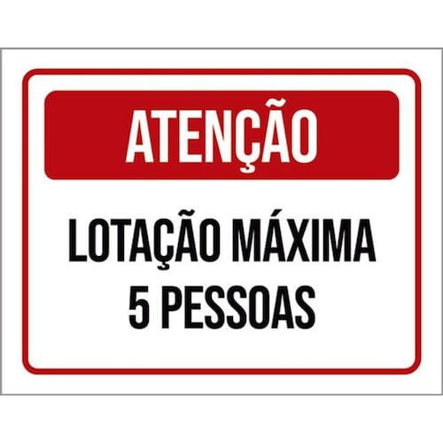 Placa Atenção Lotação Máxima 5 Pessoas Vermelha 36x46 Placas de sinalizaço fabricadas com poliestireno de alto impacto PSAI de 2mm e impressão ultravioleta.