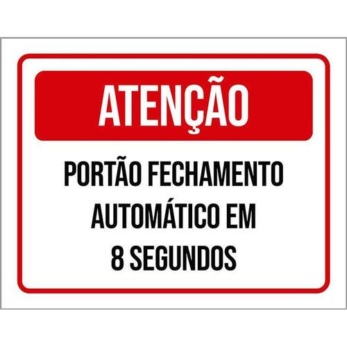 Placa Atenção Portão Fechamento Automático 8 Segundos 36x46 Informações do Produto: Placas decorativas fabricadas com poliestireno de alto impacto PSAI de 2mm e impressão ultravioleta. - Medidas: 36cm x 46cm - Fixação: Todas as placas possuem adesivo dupla face para aplicação em qualquer tipo de superfície lisa. de 12 meses e disponibilidade imediata. Marca: Não Informado