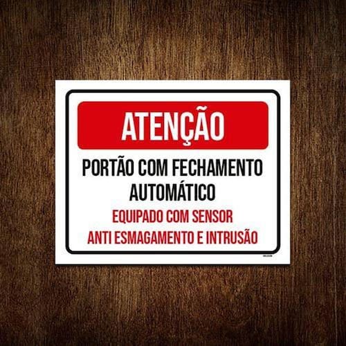 Placa Atenção Portão Fechamento Automático Sensor 27X35