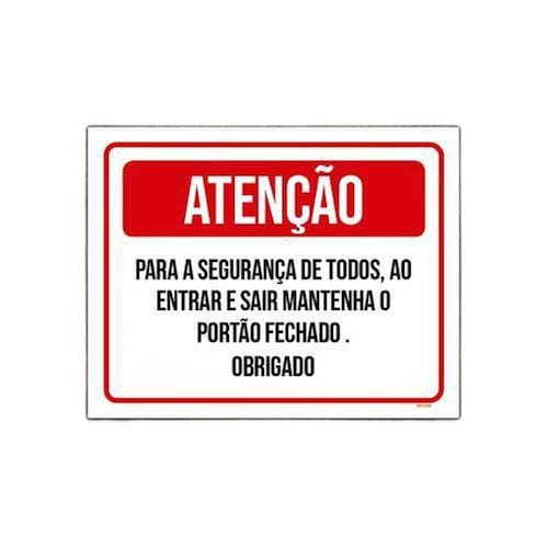 Características: - Placa decorativa Atenção Segurança Todos Entrar Sair Portão - Fabricadas em poliestireno de alto impacto - Ideal para decorar e organizar os ambientes - Impressão ultravioleta