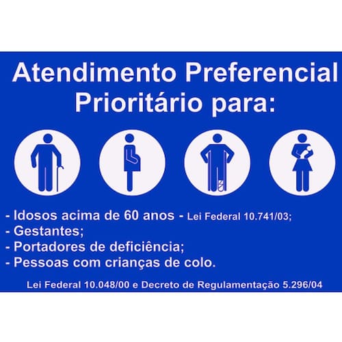 Especificação do produto: Material: PVC Medidas: 30cm X 20cm Fixação: adesivo, pregos ou parafusos Texto: ATENDIMENTO PREFERENCIAL Quantidade: 1 Unidade