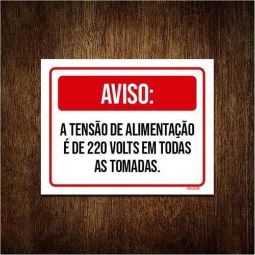 Características: - Placa decorativa Aviso Tensão Alimentação 220V Todas Tomadas - Fabricadas em poliestireno de alto impacto - Ideal para decorar e organizar os ambientes - Impressão ultravioleta