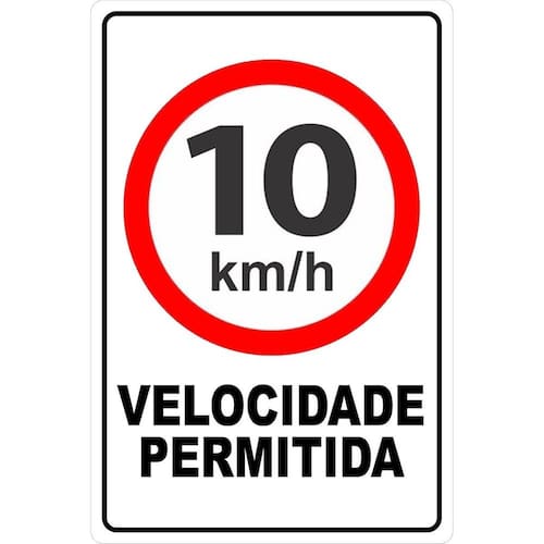 Especificação do produto: Material: pvc Medidas: 30cm x 20cm Fixação: adesivo, pregos ou parafusos Texto: aviso velocidade máxima permitida 10km/h Quantidade: 1 unidade