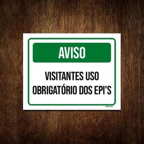 Características: - Placa decorativa Aviso Visitantes Uso Obrigatório Epi - Fabricadas em poliestireno de alto impacto - Ideal para decorar e organizar os ambientes - Impressão ultravioleta