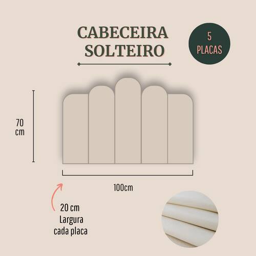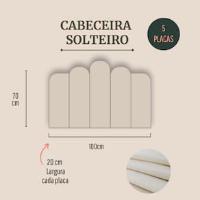 Tamanho solteiro (5 placas): 100cm (comprimento total) x 70cm (altura) x 3 cm (profundidade).
