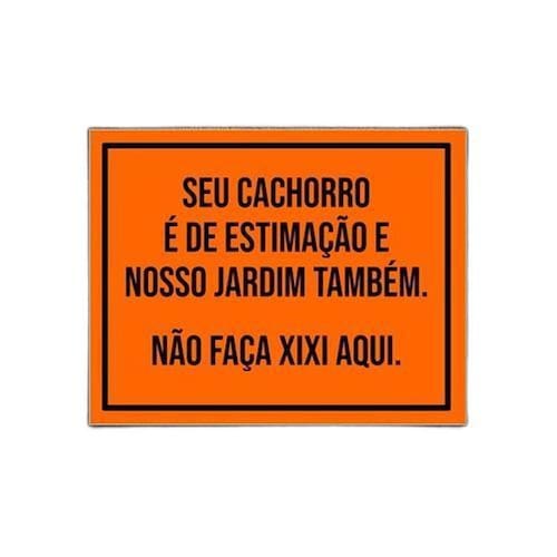 Placa cachorro de estimação nosso jardim não faça xixi 36x46 Placa recolha coco fezes cachorro sinalização vizinho legal Não precisa furar, não empena e nem perde a cor no sol, pode ser rebitada e não rasga - informações do produto: Placas decorativas fabricadas com poliestireno de alto impacto psai de 2mm e adesivo vinil automotivo de alta performance. - medidas: 36cm x 46cm - fixação: Todas as placas possuem adesivo dupla face para aplicação em qualquer tipo de superfície lisa. de 12 meses e disponibilidade imediata. Marca: Não Informado