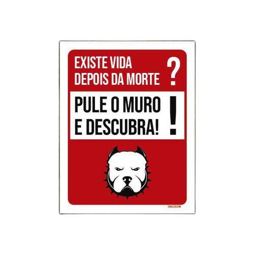 Placa Cão Bravo Existe Vida Após Morte Pule Muro 18X23