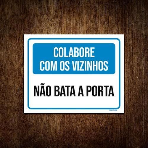 Placa Colabore Com Vizinhos Não Bata Porta 36x46 - Informações do Produto: Placas decorativas fabricadas com poliestireno de alto impacto PSAI de 2mm e adesivo vinil automotivo de alta performance. - Medidas: 36cm x 46cm - Fixação: Todas as placas possuem adesivo dupla face para aplicação em qualquer tipo de superfície lisa. de 12 meses e disponibilidade imediata. Marca: Não Informado