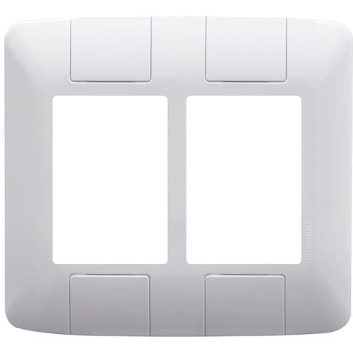 Características Técnicas: - Matéria Prima: Termoplástico - Acabamento: Placa com acabamento auto brilho e parafusos ocultos por tampas - Tamanhos: 4x4 - Cor: Branco (exportação) - Certificação: Itens certificados em conjunto com módulos de interruptores e tomadas - Módulos: A fixação do módulo é pela parte posterior da placa, sem a necessidade de parafuso - Parafuso: Auto atarraxante 3,5mm x 22mm zincado branco