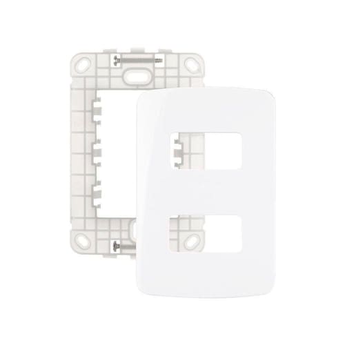 Placa com Suporte MarGirius B3 4x2 para 2 Módulos Horizontais Distanciados Branca