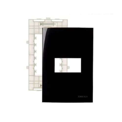Placa com Suporte MarGirius Sleek 4x2 para 1 Módulo Horizontal Preto Ebony