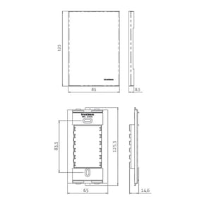 Dimensões AxLxP (mm): Placa: 125x85x8,5 - Suporte: 125,3x65x14,6