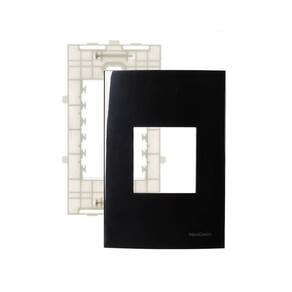 Placa com Suporte MarGirius Sleek 4x2 para 2 Módulos Horizontais Preto Ebony