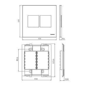Dimensões AxLxP (mm): Placa: 125x133x8,5 - Suporte: 125,4x114x15,6