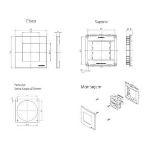 Dimensões AxLxP (mm): Placa: 80x80x8 - Suporte: 67x67x14,8