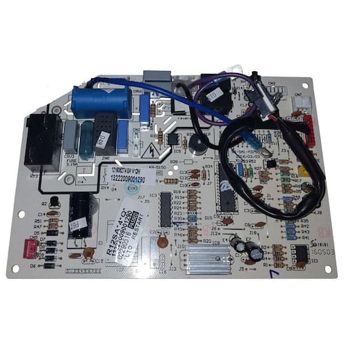 A placa eletrônica principal da evaporadora tem a função de controlar e supervisionar as funções do aparelho , normalmente possui 4 funções pré programadas são automático, frio, desumidificar, quente e ventilação, controla também a temperatura que a unidade condensadora deve ligar e desligar, monitora a temperatura interna comparando com a temperatura selecionada pelo usuário através do controle remoto, monitora também a temperatura que o fluido refrigerante passa na serpentina da evaporadora alertando se algo estiver fora do padrão, controla também a velocidade do motor ventilador da evaporadora.