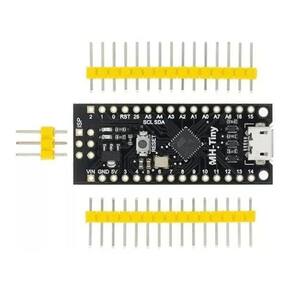 não fornecemos assitencia técnica, compre somente se tiver certeza. Caso queira comprar mais de uma unidade nos envie uma mensagem para montarmos um kit, pois provavelmente o valor do item irá ficar menor. O mh-et live tiny88 16.0mhz baseou placa de desenvolvimento de microcontrolador semelhante à linha arduino, apenas mais barato, menor e um pouco menos poderoso. Com a capacidade de usar o arduino ide familiar o mh-et live tiny88 16.0mhz é uma ótima placa para saltar para a eletrônica, ou perfeito para quando uma outra placa é muito grande ou demais. O tiny88 de mh-et 16.0mhz é enviado inteiramente montado exceto para o headersincluded e fácil soldá-los por si mesmo. Especificações: Suporte para o arduino ide 1.0 + osx/win/linux 1. Alimentação via usb ou fonte externa-5v ou 7-35v 12v ou menos recomendado, seleção automática 2. A bordo 500ma 5v regulador 3. Built-in usb 4. 26 pinos de i/o 2 são para usb somente se seu programa se comunica ativamente sobre usb, caso contrário, você pode usar todos os 6 mesmo se você estiver programando via usb 5. Memória flash 8k cerca de 6k após bootloader 6. I2c e spi 7. 26-pwm 26 pinos com software pwm, apenas dois d9, d10 com ferragem pwm 8. Adc em 8 pinos 9. Power led e teste/status led 10. Tamanho mm :44.5x18.3x3 Marca: Não Informado