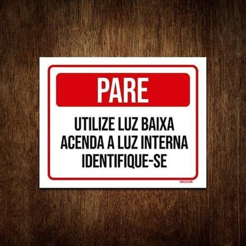 Placa Condomínio Pare Utilize Luz Baixa Identifique-se 36x46 - Informações do Produto: Placas decorativas fabricadas com poliestireno de alto impacto PSAI de 2mm e adesivo vinil automotivo de alta performance. - Medidas: 36cm x 46cm - Fixação: Todas as placas possuem adesivo dupla face para aplicação em qualquer tipo de superfície lisa. de 12 meses e disponibilidade imediata. Marca: Não Informado Ean: 7794723284313