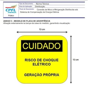Placa Cuidado - Geração Própria - Padrão CPFL Tamanho 13x13 ca 10Un
