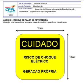 Placa Cuidado - Geração Própria - Padrão CPFL Tamanho 13x13 ca