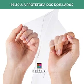 O Petg possui uma película de proteção dos dois lados, para evitar que arranhe ou danifique. Antes de aplicar na moldura, é necessário remover as películas para que fique transparente.