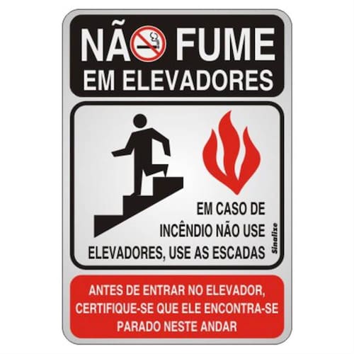 Placa de Alumínio Auto-Adesiva 16x23cm Não Fume em Elevadores – 150 AG – SINALIZE