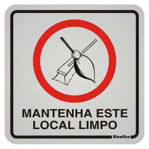 Placa de Alumínio Auto-Adesiva 12x12cm Mantenha Este Local Limpo 900 AM SINALIZE