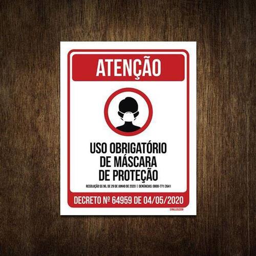Placa De Atenção - Uso Obrigatório Máscara Proteção 18X23