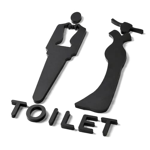 Material: PVC Tamanho: 25x8,5 cm Design 3D exclusivo: letreiros de banheiro masculinos e femininos elegantes e modernos com representação clara de gênero, perfeitos para escritórios, espaços públicos ou banheiros domésticos. Durável e resistente às intempéries: feita de PVC de alta qualidade, esta placa foi construída para durar e suportar condições internas e externas. Fácil de instalar: o suporte autoadesivo facilita e agiliza a aplicação em portas ou paredes sem a necessidade de ferramentas ou hardware extras. Claro e reconhecível: o design apresenta silhuetas masculinas e femininas com uma etiqueta “TOILET” clara para facilitar a identificação dos banheiros. Aplicação versátil: ideal para escritórios, restaurantes, shoppings, edifícios públicos e residências que precisam de sinalização de banheiro clara e durável.