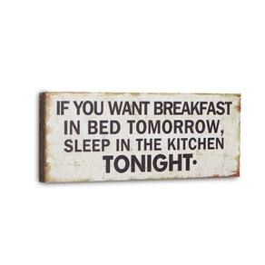 - Uma única placa de parede de madeira “Se você quiser tomar café da manhã na cama amanhã, durma na cozinha hoje à noite”
