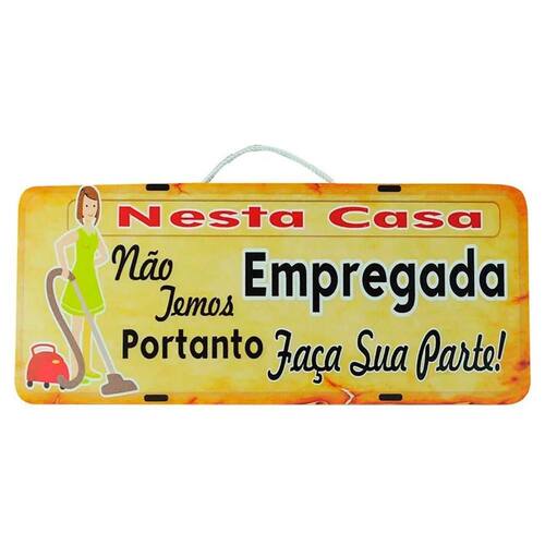 Placa de carro decorativa em madeira - sem empregada - faça sua parte Placa de carro para parede em madeira decorativa Placa de carro decorativa em madeira ecológica e sustentável de alta qualidade e durabilidade é indicada para decorar sua casa, área do churrasco, salas e varandas com muita criatividade e estilo. Esta placa decorativa vai deixar o seu ambiente favorito mais leve e com estilo, a parte traseira conta com suporte para dependurar o produto, imagem com impressão digital auto brilho no vinil em alta resolução. Deixe o seu cantinho favorito da casa, áreas gourmet, salas e varandas com um clima agradável, alegre e descontraído, sendo também uma ótima opção de presente. Dimensões em centímetros: - dimensões cm : altura: 13,5 cm x comprimento: 30,5 cm x espessura: 3 mm. Características do produto: - confeccionado em madeira mdf ecológica de alta qualidade e durabilidade. - quadro com gancho para dependurar, cortado a laser e com imagem em vinil em alta resolução. - produzido por artesões profissionais seguindo um padrão de qualidade que atenda o gosto dos nossos clientes Cuidados: - recomendamos o uso de pano levemente umedecido para sua limpeza. do produto: - o produto é muito bem acomodado dentro da caixa, e super embalado para evitar quebras, ainda assim possuímos um sistema de e troca. Imagens meramente ilustrativas - produto artesanal, podendo variar de cor e/ou tonalidade Marca: Retrofenna Decor Ean: 7892484210913
