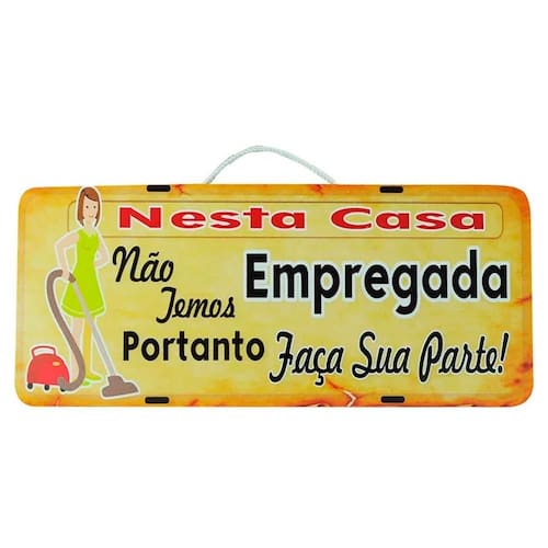 Placa de carro decorativa em madeira - sem empregada - faça sua parte Placa de carro para parede em madeira decorativa Placa de carro decorativa em madeira ecológica e sustentável de alta qualidade e durabilidade é indicada para decorar sua casa, área do churrasco, salas e varandas com muita criatividade e estilo. Esta placa decorativa vai deixar o seu ambiente favorito mais leve e com estilo, a parte traseira conta com suporte para dependurar o produto, imagem com impressão digital auto brilho no vinil em alta resolução. Deixe o seu cantinho favorito da casa, áreas gourmet, salas e varandas com um clima agradável, alegre e descontraído, sendo também uma ótima opção de presente. Dimensões em centímetros: - dimensões cm : altura: 13,5 cm x comprimento: 30,5 cm x espessura: 3 mm. Características do produto: - confeccionado em madeira mdf ecológica de alta qualidade e durabilidade. - quadro com gancho para dependurar, cortado a laser e com imagem em vinil em alta resolução. - produzido por artesões profissionais seguindo um padrão de qualidade que atenda o gosto dos nossos clientes Cuidados: - recomendamos o uso de pano levemente umedecido para sua limpeza. do produto: - o produto é muito bem acomodado dentro da caixa, e super embalado para evitar quebras, ainda assim possuímos um sistema de e troca. Imagens meramente ilustrativas - produto artesanal, podendo variar de cor e/ou tonalidade Marca: Retrofenna Decor