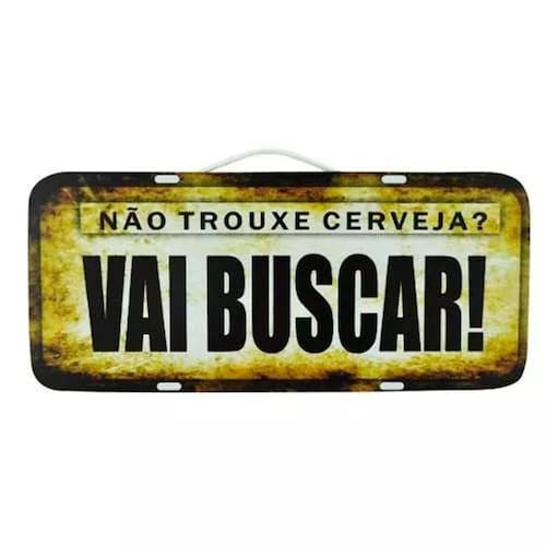 Placa de carro decorativa em madeira - não trouxe cerveja Vai buscar Placa de carro para parede em madeira decorativa Placa de carro decorativa em madeira ecológica e sustentável de alta qualidade e durabilidade é indicada para decorar sua casa, área do churrasco, salas e varandas com muita criatividade e estilo. Esta placa decorativa vai deixar o seu ambiente favorito mais leve e com estilo, a parte traseira conta com suporte para dependurar o produto, imagem com impressão digital auto brilho no vinil em alta resolução. Deixe o seu cantinho favorito da casa, áreas gourmet, salas e varandas com um clima agradável, alegre e descontraído, sendo também uma ótima opção de presente. Dimensões em centímetros: - dimensões cm : altura: 13,5 cm x comprimento: 30,5 cm x espessura: 3 mm. Características do produto: - confeccionado em madeira mdf ecológica de alta qualidade e durabilidade. - quadro com gancho para dependurar, cortado a laser e com imagem em vinil em alta resolução. - produzido por artesões profissionais seguindo um padrão de qualidade que atenda o gosto dos nossos clientes Cuidados: - recomendamos o uso de pano levemente umedecido para sua limpeza. do produto: - o produto é muito bem acomodado dentro da caixa, e super embalado para evitar quebras, ainda assim possuímos um sistema de e troca. Imagens meramente ilustrativas - produto artesanal, podendo variar de cor e/ou tonalidade Marca: Retrofenna Decor Ean: 0745125644127
