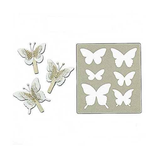 Faca de Cortes Para Scrapbook e Artesanato Modelo Borboletas Tamanho das facas: - 6,5cm x 5,5cm - 5,8cm x 4,5cm - 5,7cm x 3,5cm - 4cm x 3cm Quantidade: 1 kit com 6 unidades conforme os tamanhos acima Ean: 6926341898141