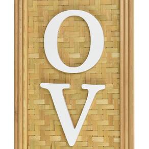 - Uma decoração de parede com obra de arte suspensa. Construção em madeira e rattan para uma estética equilibrada e uso duradouro.