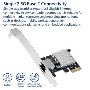 IO CREST Placa de interface de rede PCI Express PCI-E Ethernet de 2,5 Gigabit 10/100/1000/25000 Mbps RJ45 LAN Chipset Intel I225, preto (SY-PEX24076)