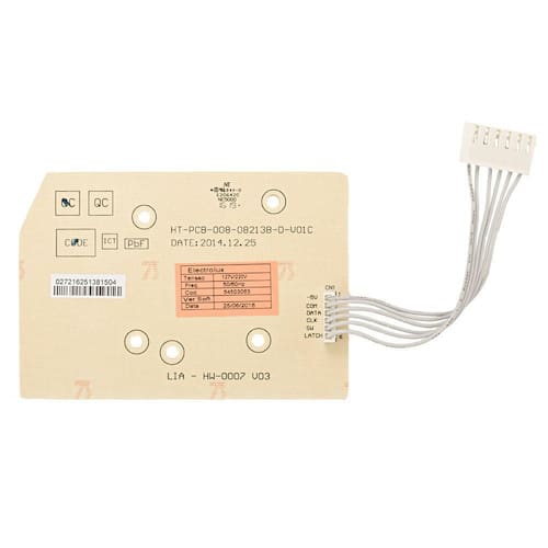 A Placa de Interface Lavadora Electrolux LAC09/LTD09/LTD15 - Bivolt possui a programação completa dos ciclos e envia para placa principal todos os comandos selecionados.