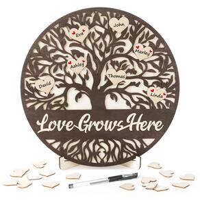 Placa de árvore genealógica Love Grows Here Tamanho: 30 x 30 cm Material: Madeira Lista de embalagem: 1x placa circular de árvore genealógica de madeira; 1x base; 35x coração; 50x ponto de cola; 1x caneta Uso: (1) Presentes para a família; presentes para pais; presentes para mães; presentes para pai; presentes de inauguração de casa; presentes de aniversário de casamento (2) Decoração familiar; decoração de casa; decoração de quarto; decoração de mesa; decoração de prateleira. (3) Exibição temática familiar; exibição temática de amor - Placa de madeira de árvore genealógica 3D: a placa genealógica é feita de madeira premium, cerca de 30 x 30 cm, com belos padrões e formas por entalhe fino; sua estrutura é resistente, não danifica facilmente e desbota - Lista de embalagem: 1x placa circular de árvore genealógica de madeira; 1x base; 35x coração; 50x ponto de cola; 1x caneta; você pode usar essas coleções de acessórios para criação manual, e então você receberá uma placa de decoração familiar personalizada exclusiva - Love Grows Here: Placa de árvore genealógica como presente ou decoração exclusiva para casa, simboliza o vínculo inseparável entre os membros da família; não apenas para o nome da família, você também pode escrever as palavras que quiser no coração para decorar o sinal de amor - Ideias de presentes para a família: um presente para toda a família; presentes para pais de filhos adultos, presentes para pais novos ou presentes para pais idosos; presentes para mãe pai da filha filho; presentes de inauguração de casa nova; presentes de aniversário de casamento - Decoração familiar personalizada: a placa de madeira personalizada de genealogia da árvore genealógica é uma decoração de casa única, você pode fazer você mesmo qualquer visual de enfeite de família que desejar; e a placa de sinalização feita à mão é perfeita como decoração de quarto sala de estar decoração de mesa prateleira de mesa
