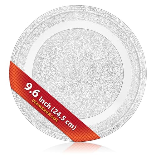 Esta placa de vidro é uma substituição ideal para uma variedade de marcas e modelos que exigem placas de vidro de 9,6"/245 mm de diâmetro sem furos e uma parte inferior plana
