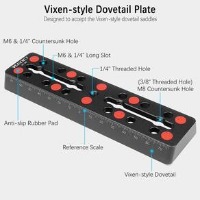 -?Placa de cauda de andorinha no estilo Vixen?Projetada para aceitar as selas de cauda de andorinha no estilo Vixen.