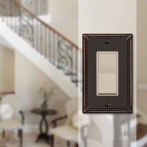 - DETALHES DO PRODUTO: Tamanho: 1 placa de parede Rocker | Estilo: Transitório | Material: metal fundido | Acabamento: bronze envelhecido | Dimensões: 0,25 (L) x 3 (L) x 4,9375 (A) | Listado pela UL, parafusos e hardware de montagem incluídos