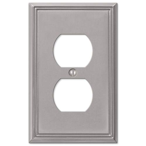 - detalhes do produto: tamanho: 1 placa de parede de saída duplex - estilo: moderno - material: metal fundido - acabamento: níquel escovado - dimensões: 0,25 (l) x 3 (l) x 4,875 (h) - listado ul, parafusos e ferragens de montagem incluídas