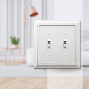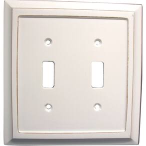 Amerelle Savannah Placa de parede de madeira com interruptor duplo em branco envelhecido
