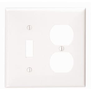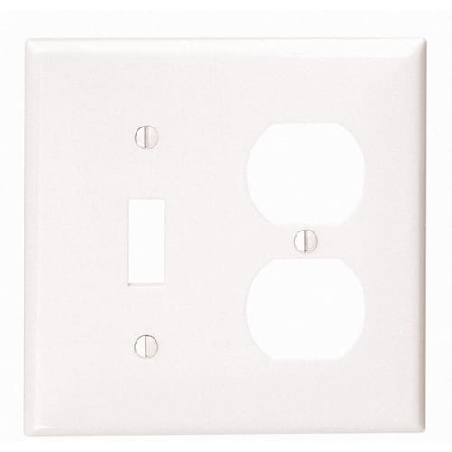 Leviton Placa de parede de combinação de dispositivo duplex de 2 faixas, 1 interruptor, tamanho padrão, nylon termoplástico, suporte para dispositivo, 80705-W, branco