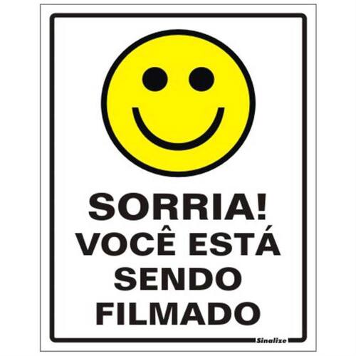 Placa de Poliestireno Auto-Adesiva 20x15cm Sorria Você Esta Sendo Filmado – 220 AJ – SINALIZE