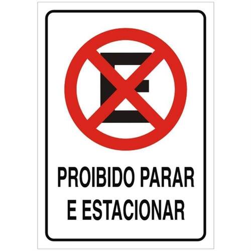 Placa de Poliestireno Auto-Adesiva 20x30cm Proibido Parar e Estacionar 250 CE SINALIZE