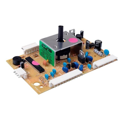 A Placa Eletrônica de Potência para Lavadora tem como função enviar as informações selecionadas pelos botões externos para as outras peças internas.