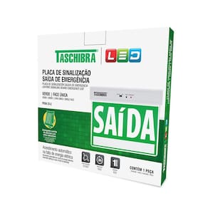 Placa De Saída Emergência Led Taschibra Face Única Verde Características Gerais do Produto: Dimensões AxLxP cm : 18,5 X 2 X 23,9 Produzido em: Plastico de Engenharia Voltagem: Bivolt Utilizado tanto em 110v como em 220v Cor Acabamento: Branco Potência: 1W Eficiência Luminosa: 30 Lúmens Formato: Retangular : 1 ano junto ao fabricante Aplicação: Parede Acompanha Lâmpada: Não necessita, LED já integrado Acompanha o produto: 01 Placa De Saída Completa : 1 ano junto ao fabricante